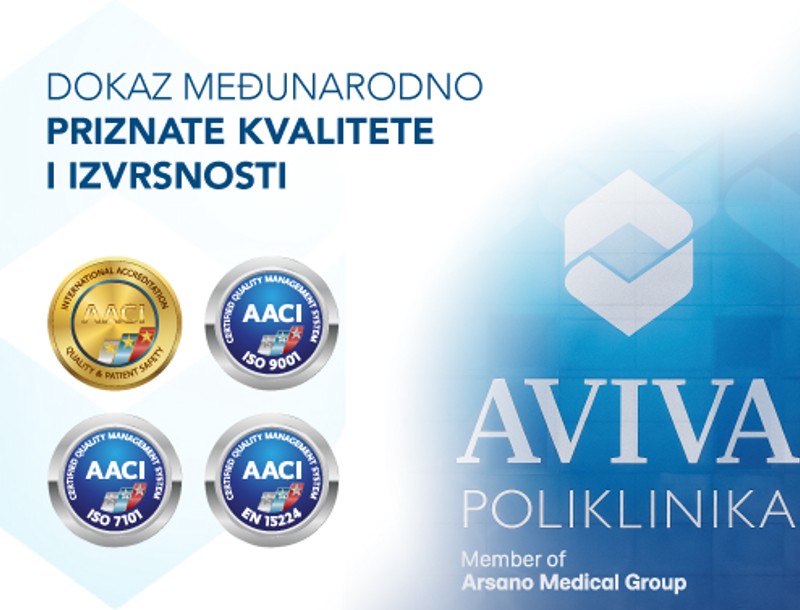 Poliklinika Aviva, jedna od vodećih privatnih zdravstvenih ustanova u Hrvatskoj, potvrdila je svoju izvrsnost i predanost najvišim standardima kvalitete i sigurnosti stjecanjem čak četiri međunarodno priznata priznanja: prestižne AACI akreditacije te certifikata ISO 9001:2015, ISO 7101:2023 i EN 15224:2016.